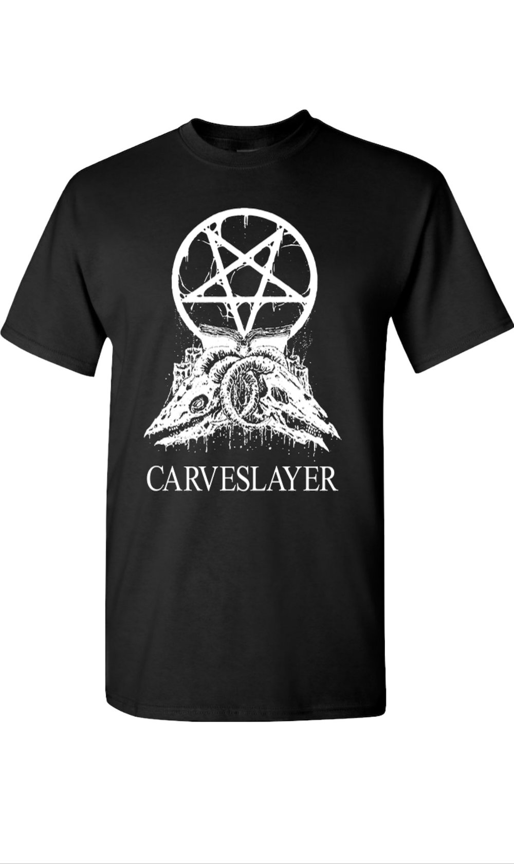 Black heavyweight Gildan blank with white ink. Rip the sleeves off, bleach it, make this shirt your own!