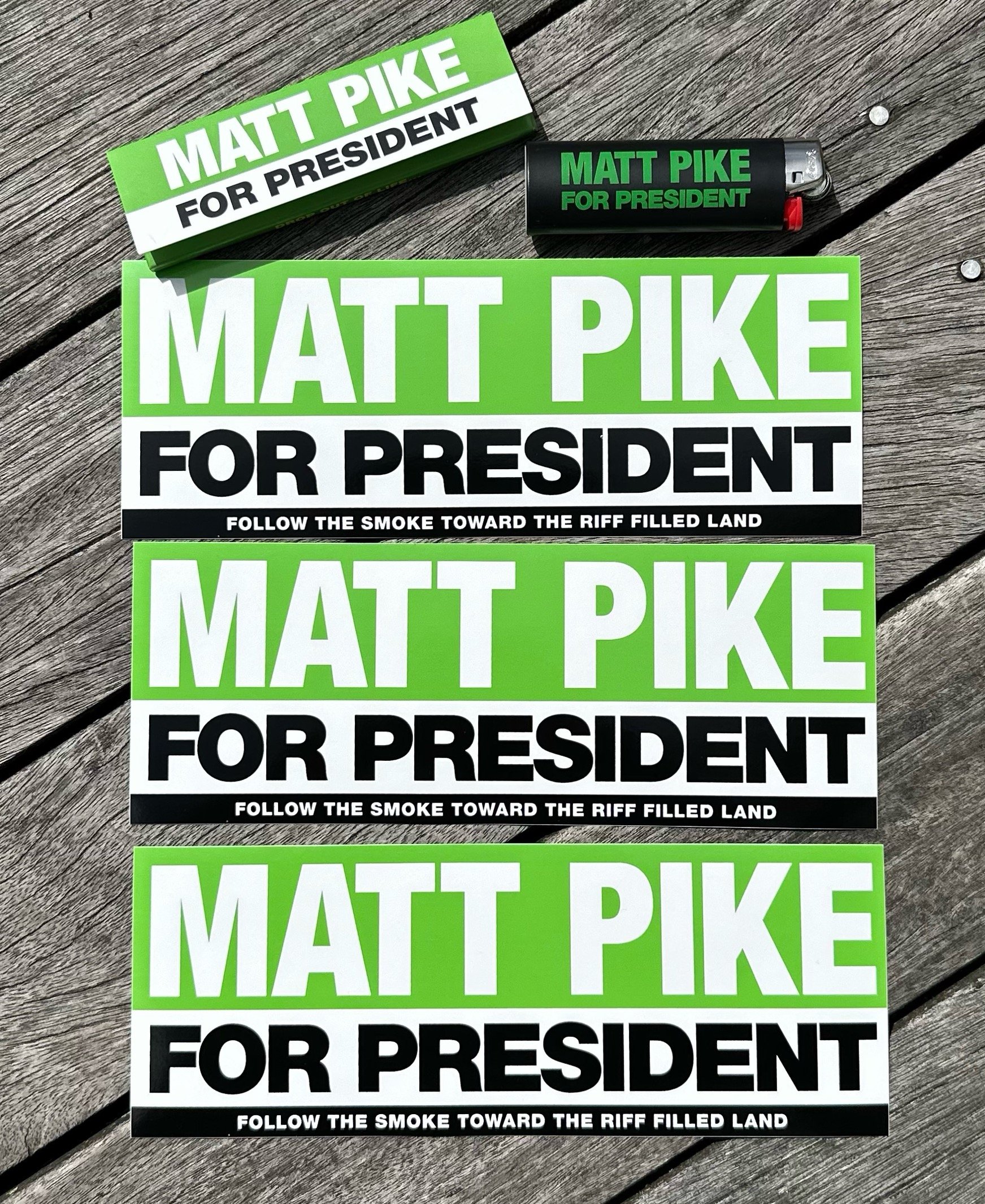 Basically everything you need. Part 2! 1 - Matt Pike For President Rolling Papers 1 - Matt Pike For President Bic Lighter 3 - Matt Pike For President Stickers